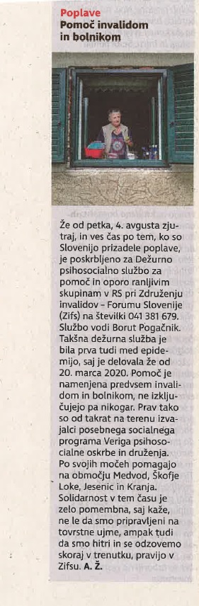 NAŠA DEŽURNA SLUŽBA JE DOVOLJ PREPOZNAVNA zifs Uncategorized September 6, 2023 Foto: sken ZIFS 2023 Tudi Delo, je v ponedeljek, 21. avgusta, objavilo kratek, a izčrpan opis dela naše Dežurne psihosocialne službe za pomoč in oporo ranljivim skupinam v RS, ki deluje že od 4. avgusta zjutraj.